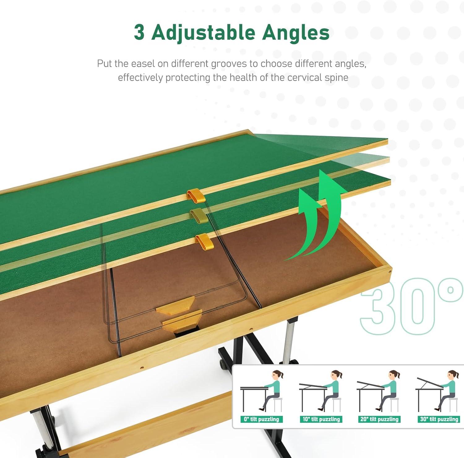 【Adjustable Angle and Height】The ALL4JIG multi-functional puzzle board is designed for optimal comfort and flexibility. The boardtop can be adjusted to three different angles within 30 degrees, allowing you to find the perfect position for your puzzle activities. Additionally, the board height is fully adjustable between 29 inches and 37.4 inches. By rotating the four screw buttons, you can easily set the desired height and angle to suit your comfort and needs. This feature ensures a comforboard and ergonomic experience for puzzle enthusiasts.