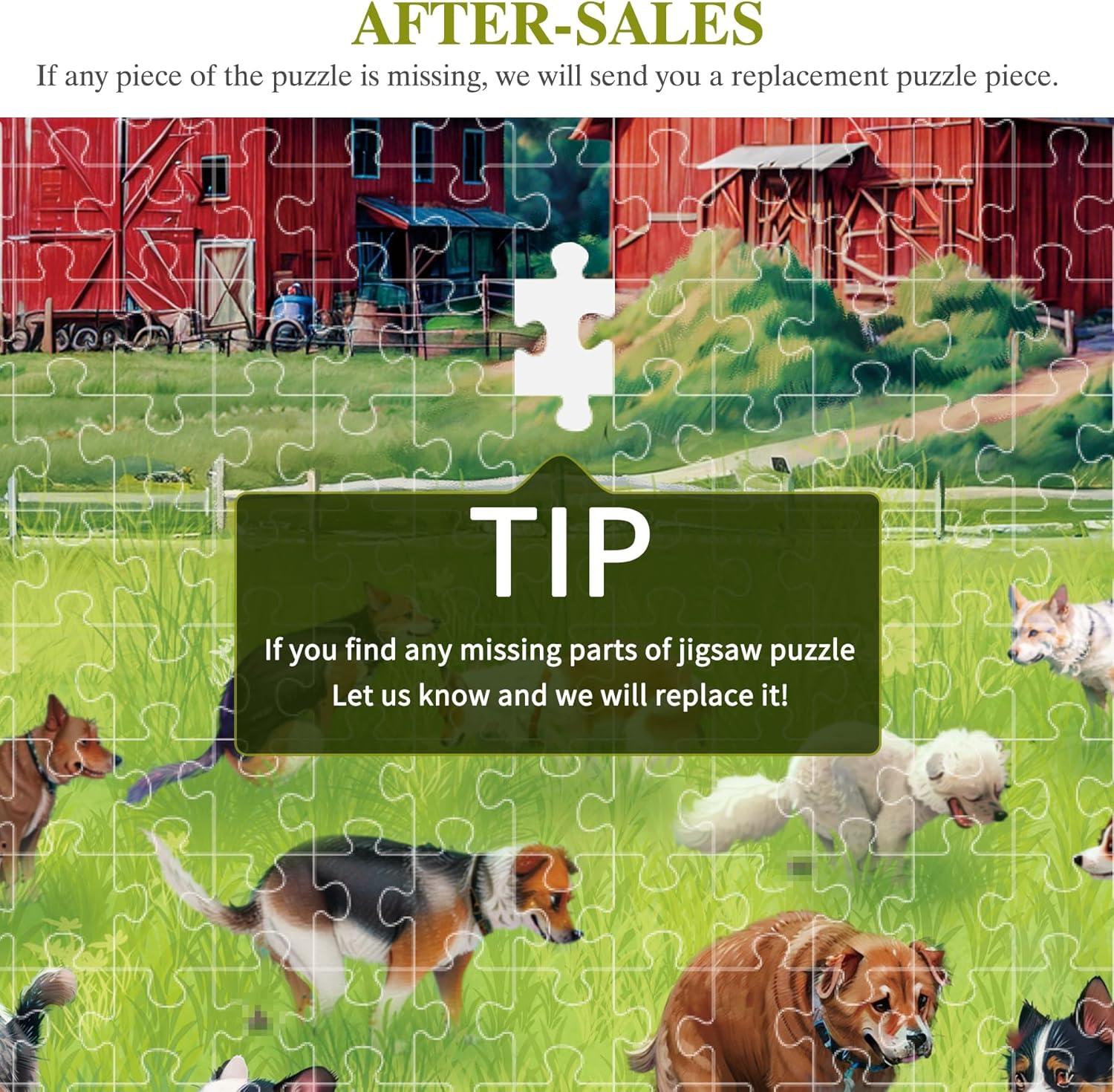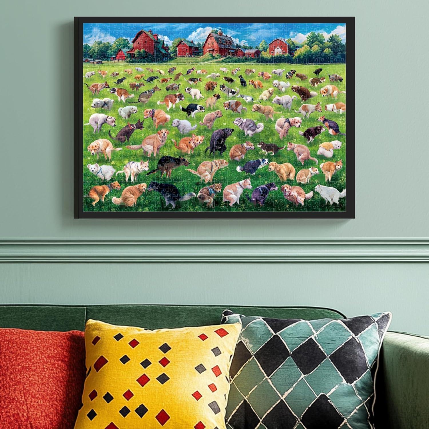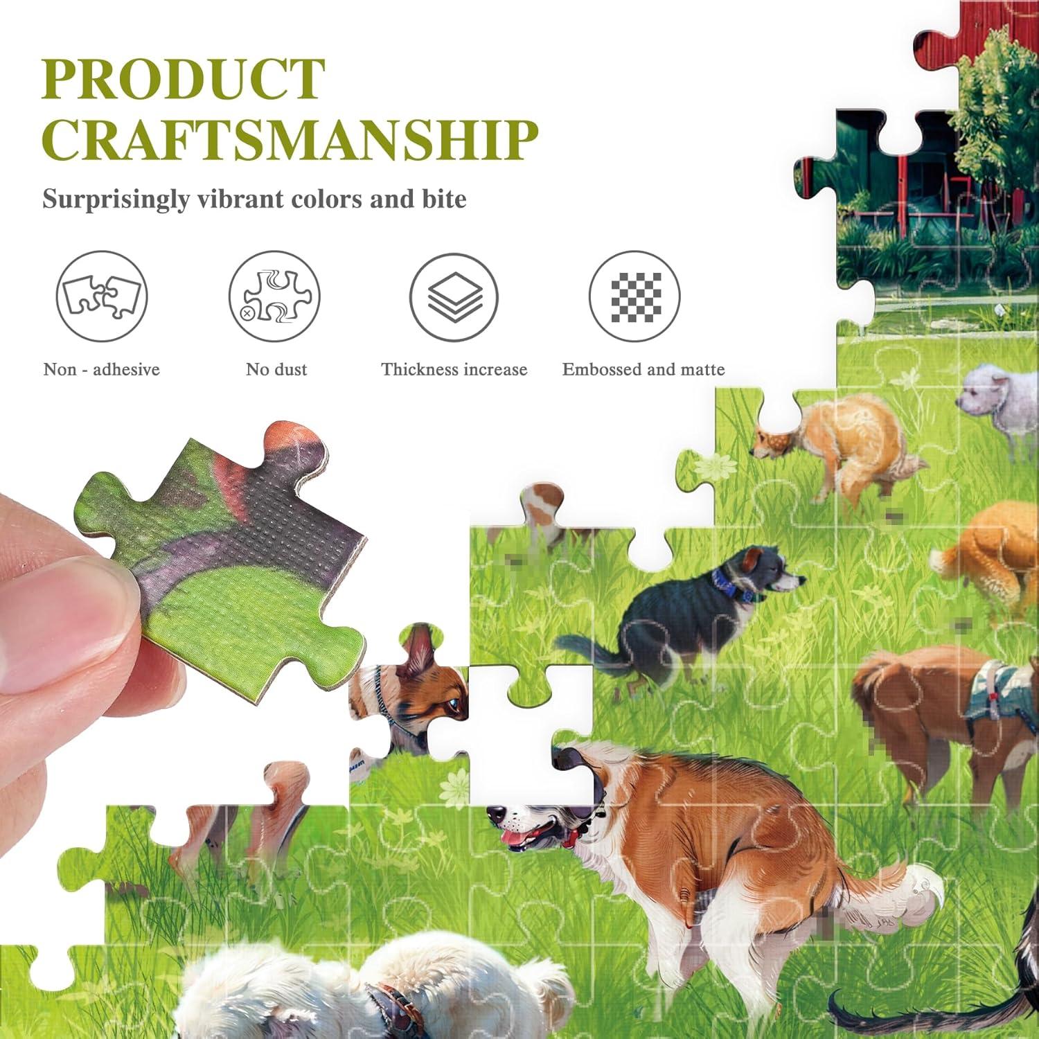 Vivid and Engaging Design: Delight in vibrant 1000 piece puzzle scenes featuring playful dogs in a whimsical shop and a serene countryside. With rich colors and intricate details, these puzzles offer a fun challenge and a visually charming experience