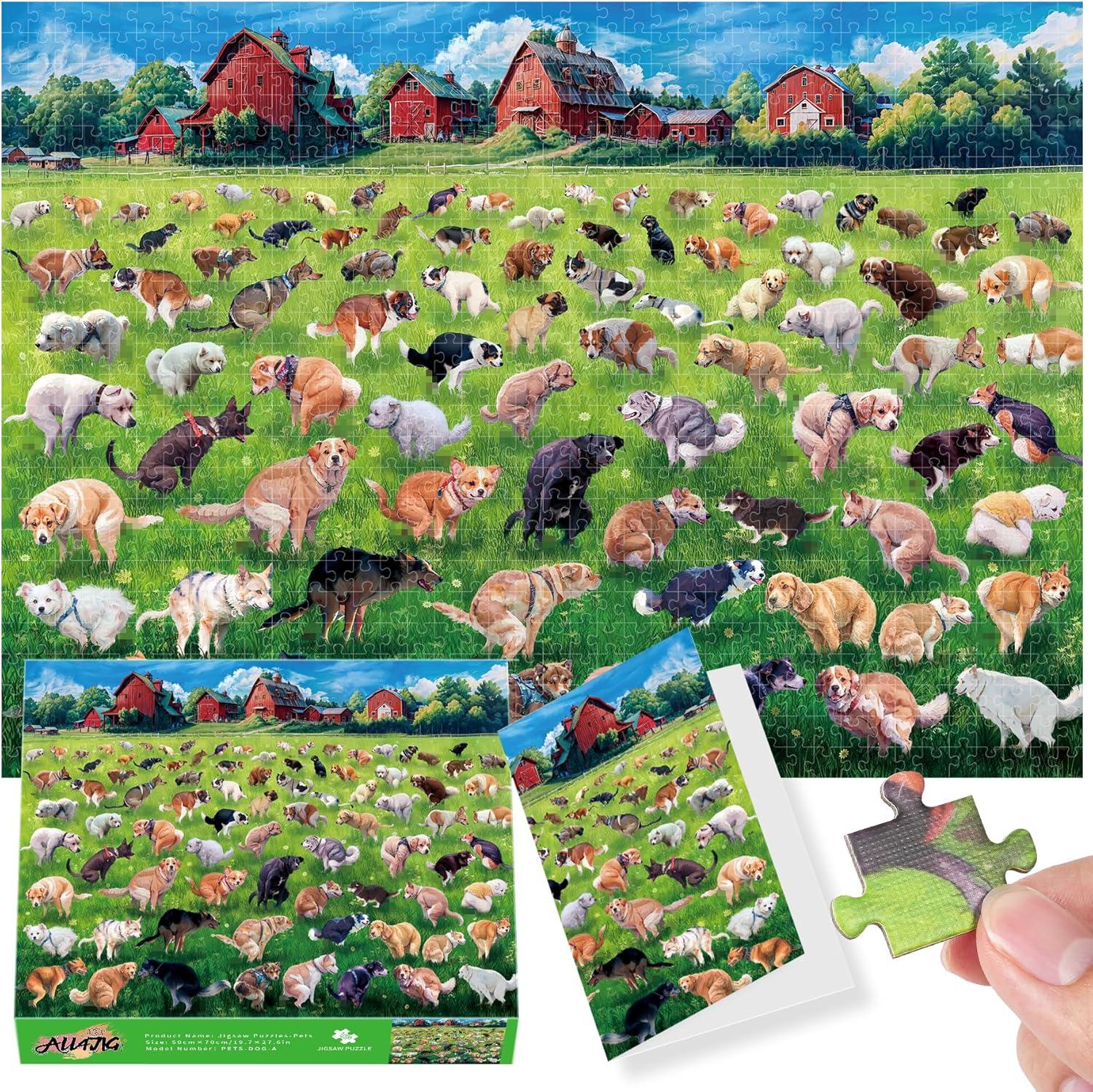 ALL4JIG Dog Fun Jigsaw Puzzles for Kids, 1000 Pieces, Christmas Secret Santa Gift, White Elephant Gifts for Dog Lovers, Number Partitioned for Easy Solving