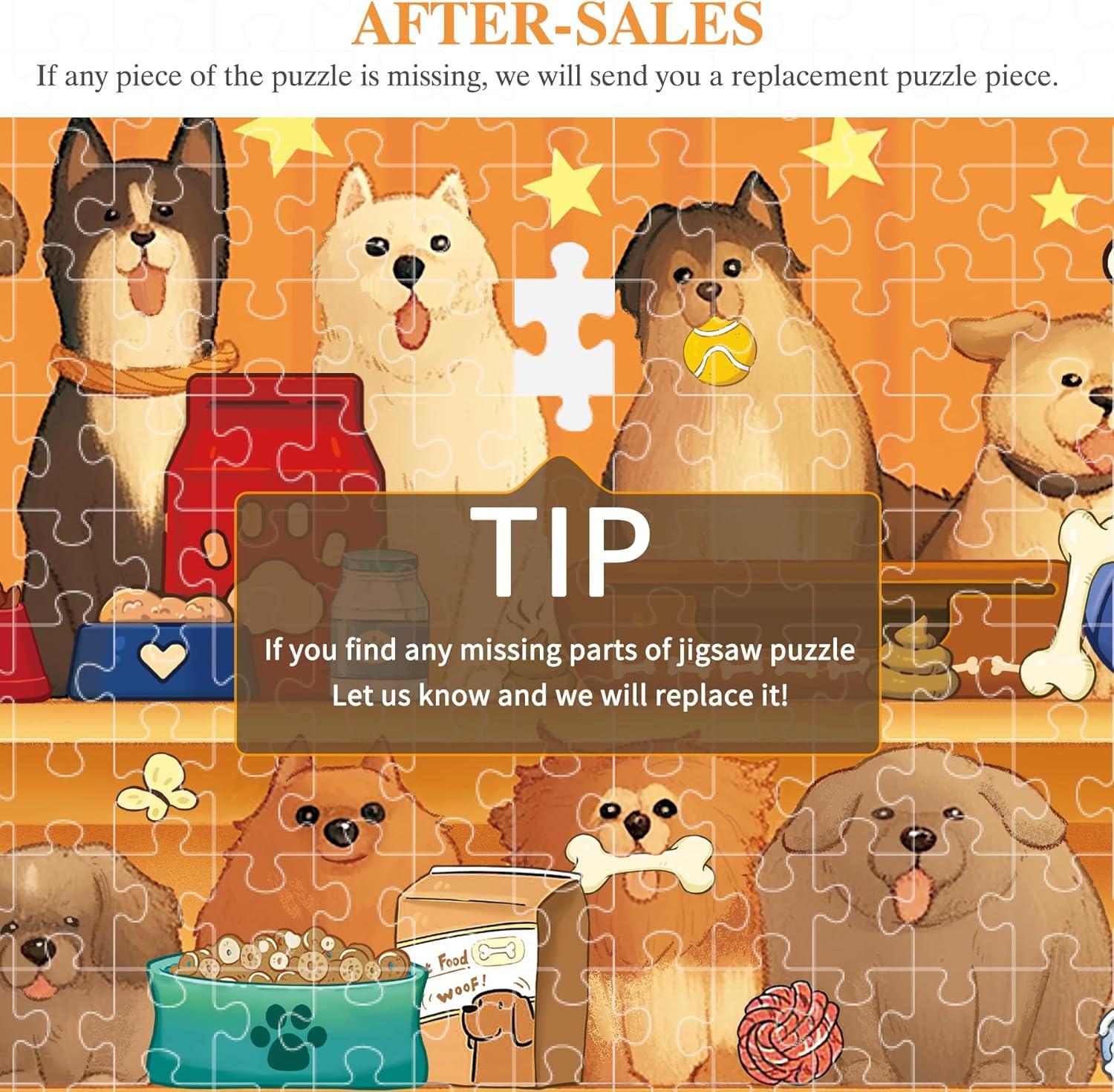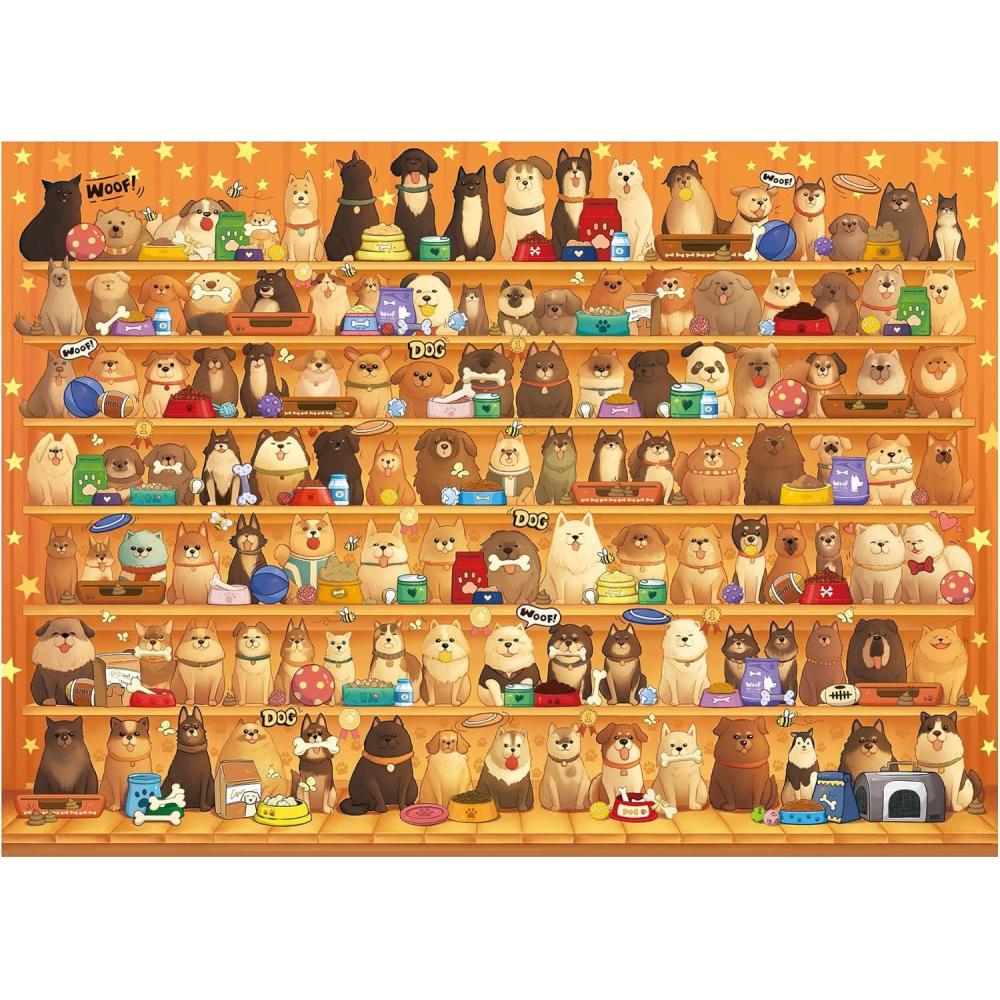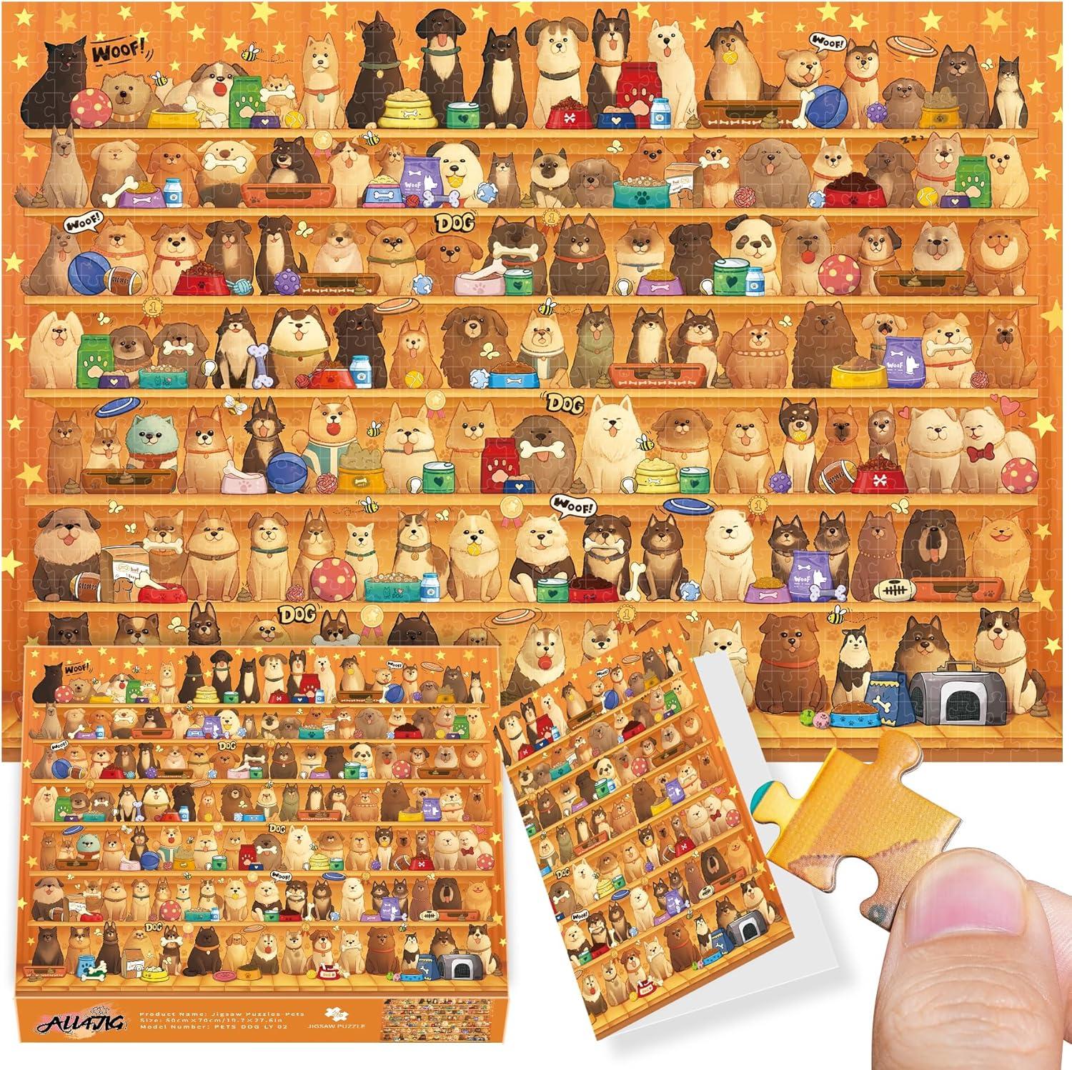 Vivid and Engaging Design: Delight in vibrant 1000 piece puzzle for adults scenes featuring playful dogs in a whimsical shop and a serene countryside. With rich colors and intricate details, these puzzles offer a fun challenge and a visually charming experience. These puzzles offer a fun challenge and a visually charming experience